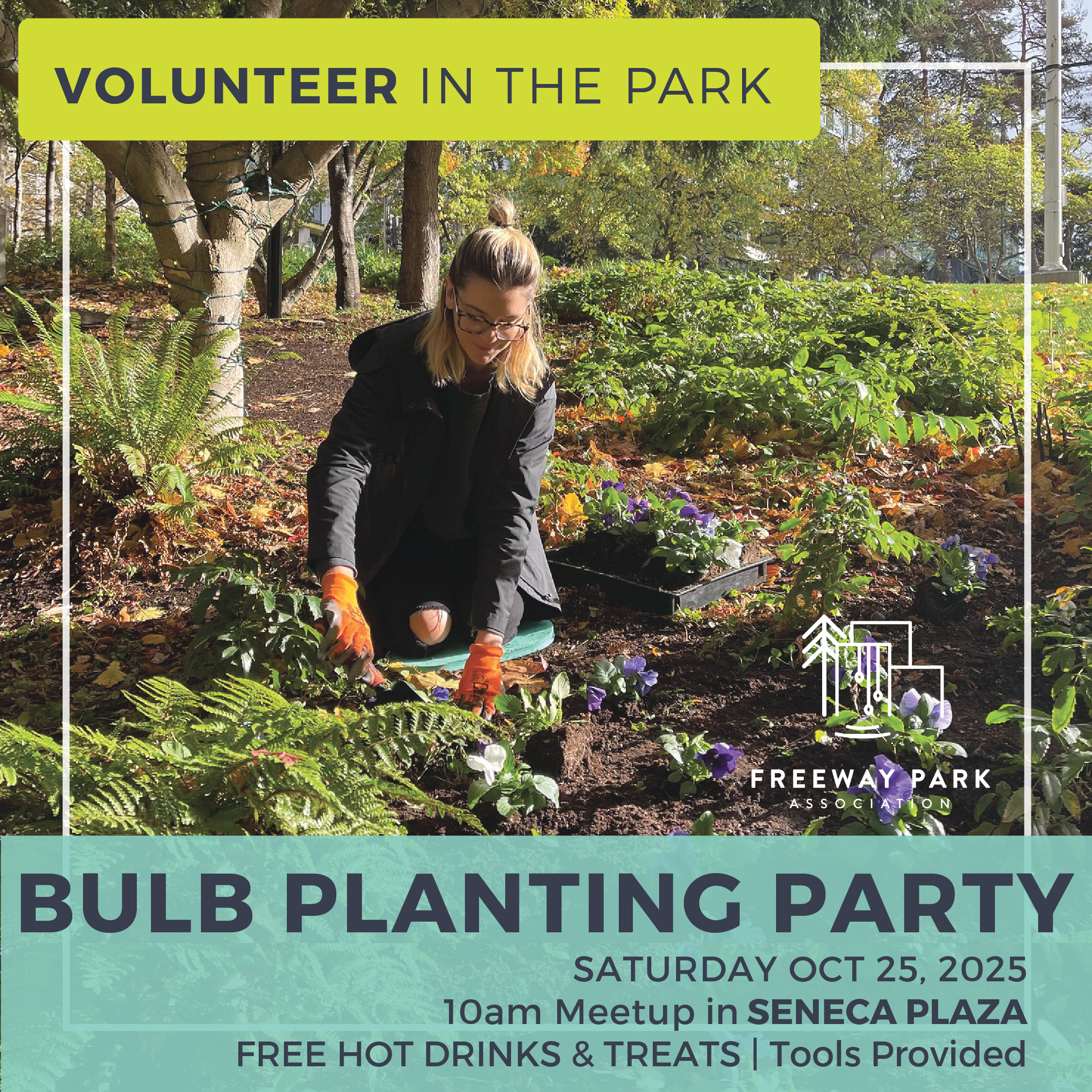 Join us Saturday October 25 at 10am for Green Seattle Day in Seneca Plaza for our bulb and annuals planting event. Doughnuts and coffee from Top Pot Doughnuts. Please SIGN UP HERE.